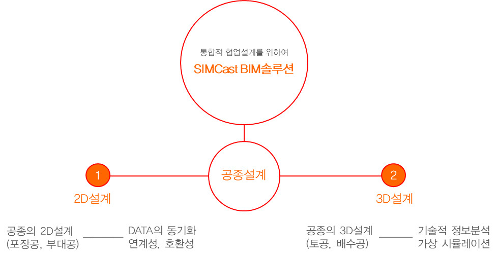 Simcast는 2D, 3D 플랫폼을 기초하여 도로설계 및 다양한 토목사업 SOC건설분야(도시계획, 택지개발, 하천, 상하수도 등)